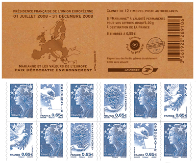 Carnet de 12 Marianne et les valeurs de l'Europe - 20g Europe |