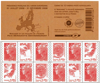 Carnet de 12 Marianne et les valeurs de l'Europe - 20g France |