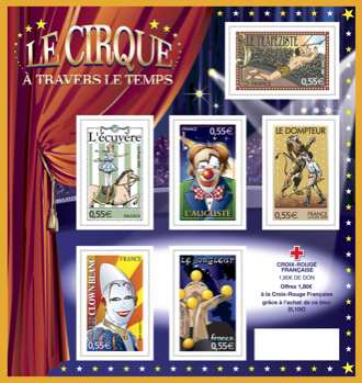 | Bloc de 6 timbres à 0,55 € + surtaxe de 1,80 € au profit de la Croix Rouge, vendu au prix de 5,10 €. |