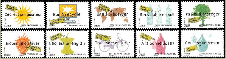 feuillet de 2 x 5 timbres personnalisés, vendus par La Poste au