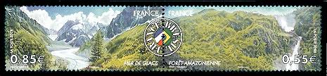 Dyptique vendu 1,40 € composé de deux timbres : 0,85 € Mer de glace et 0,55 € Forêt amazonienne. |